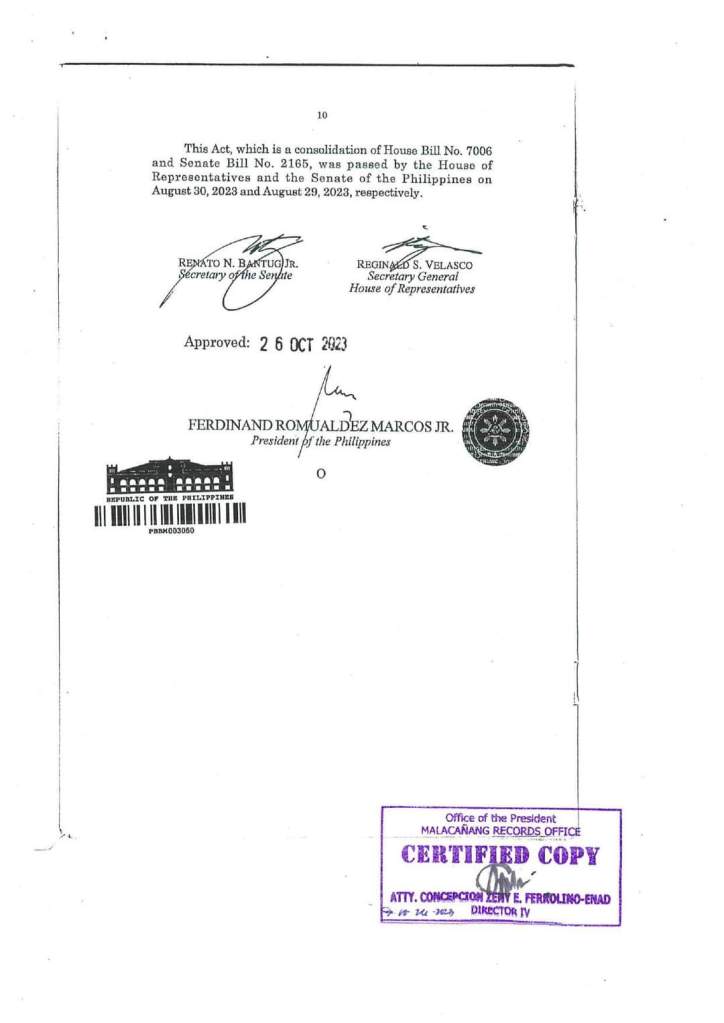 President Marcos has signed into law Republic Act (RA) No. 11964, also known as the Automatic Income Classification of Local Government Units Act, 26 October 2023.