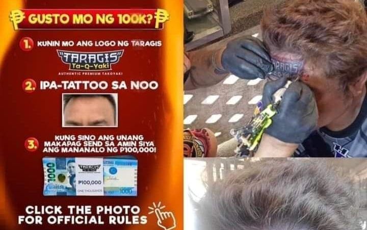 In a now-deleted post on April 1, Taragis announced that the first individual who would send a picture of their tattooed forehead will win an amount of P100,000 as supposed prize money.