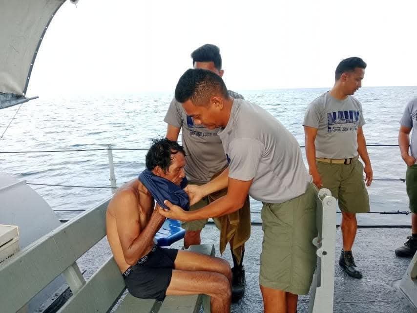 Dalawang araw nang palutang-lutang sa dagat ang isang mangingisda nang masagip ng Philippine Navy sa Andulingan Island sa Sitangkai, Tawi-Tawi.
