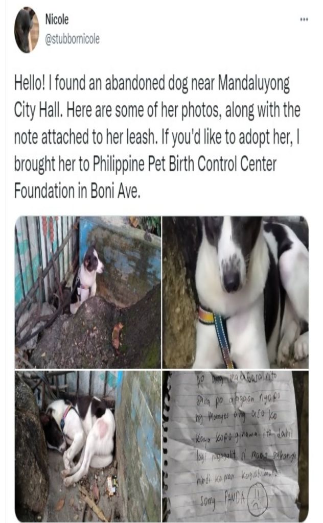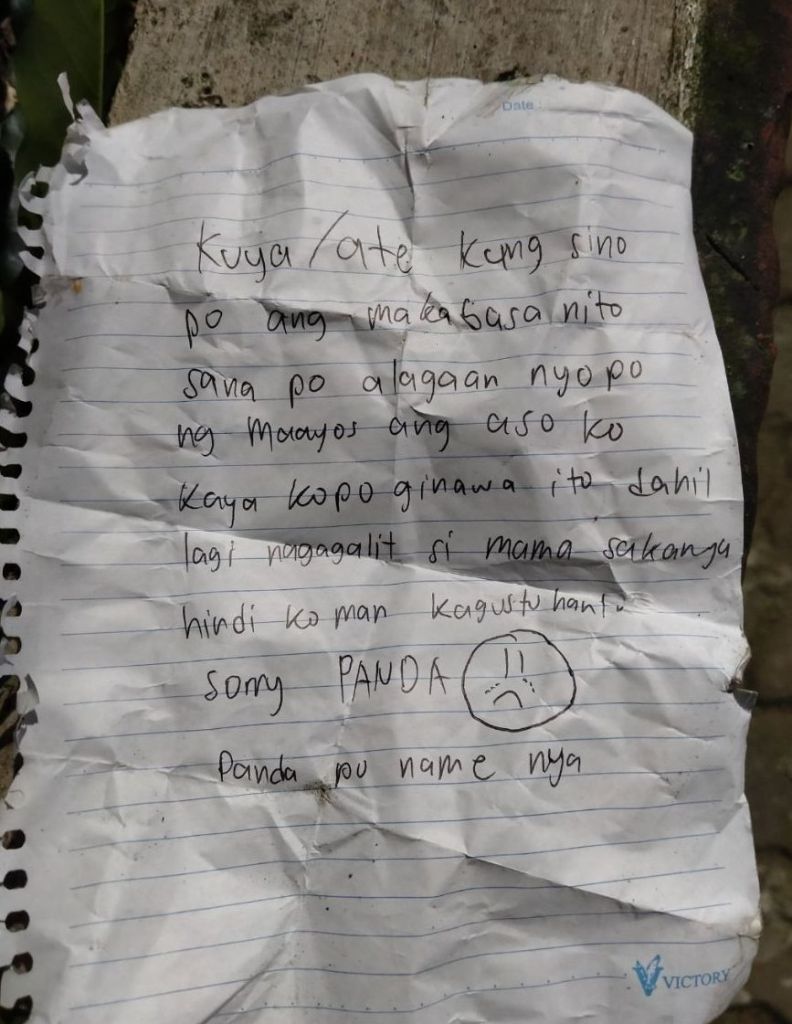Panda! Ito ang pangalan ng kawawang aso base sa sulat ng kanyang amo.