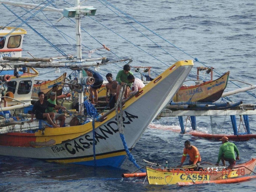 Nasagip ng Philippine Coast Guard (PCG) partikular na ng Barko ng Republika ng Pilipinas (BRP) Teresa Magbanua ang 17 tripulanteng sakay ng isang fishing vessel na FB CASSANDRA matapos masiraan ng propeller malapit sa Bajo de Masinloc kahapon, Hulyo 17, 2025.